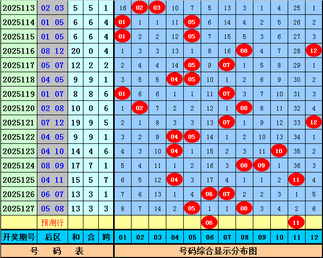 后区分析:上期后区奖号为05+08,开出一大一小组合,上周一后区奖号开出04+11,最近十周一后区奖号大小比为10:10,大小 号码走势基本相当,本周一看好大小 号码继续平衡,关注两码06、11。