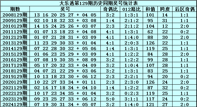 水镜体彩大乐透第2025129期历史同期奖号分析: