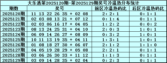 周横大乐透第2025130期号码推荐: