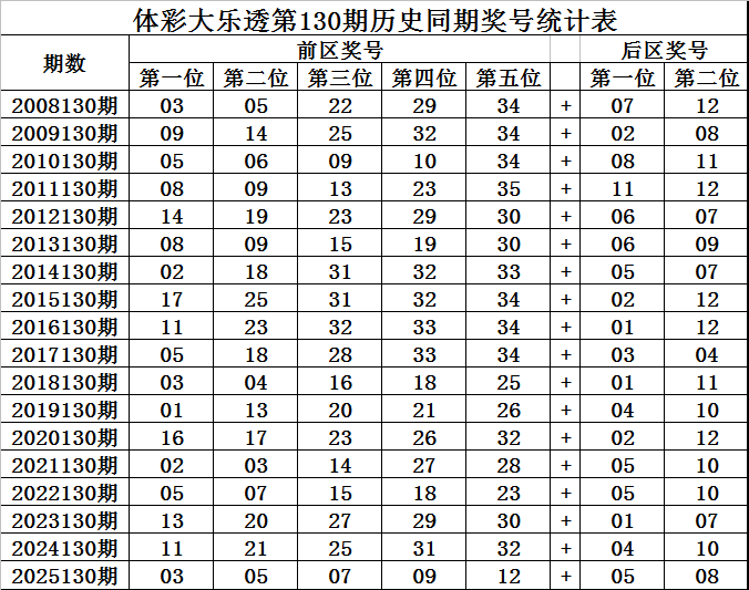 王守礼体彩大乐透第2025130期历史同期定位升重降号码分析: