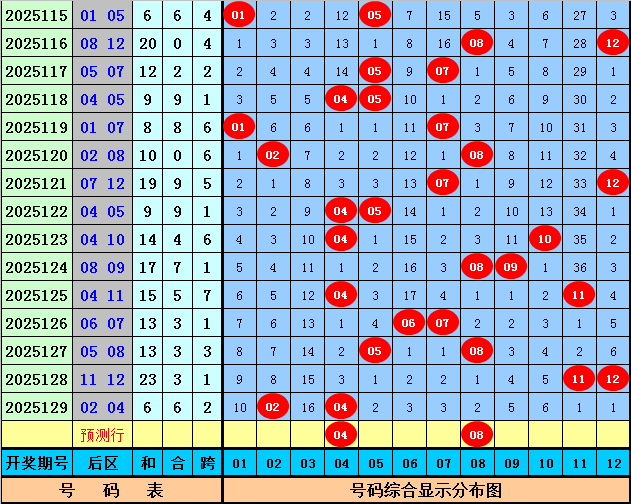后区第一位分析:在第130期历史同期开奖中,该位号码升重降次数比为6:2:8,出现范围在01-11区间,最近5年后区第一位号码升重降次数比为2:1:2,出现范围在01-05,对比最近几年同期号码,今年第130期看好后区第一位号码逐渐下降,关注号码04。
