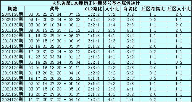 后区判断:后区第130期历史同期奖号大小比总比例为3:14,小 号表现较冷,本期小 号回补,关注一大一小,看好两码03、07。