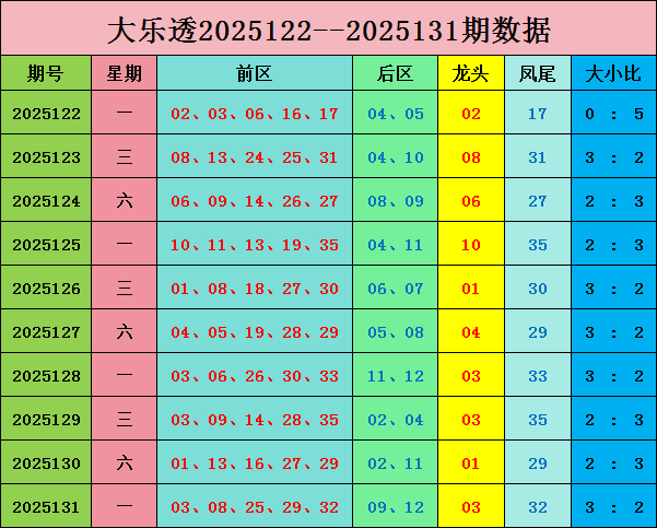 大乐透第2025131期奖号为:前区03 08 25 29 32,后区09 12;奇偶比3:2,大小比:3:2.