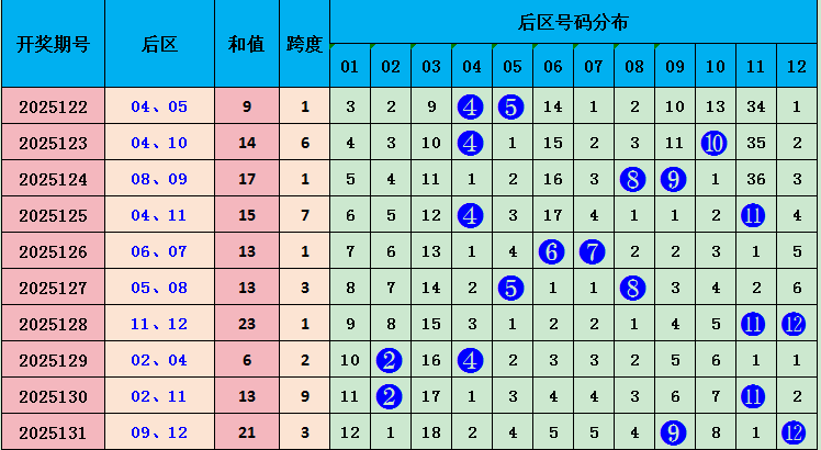 上期后区开出09 12