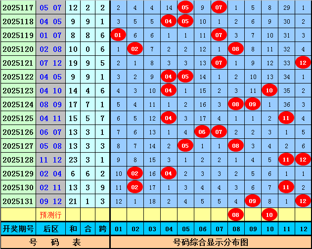后区大小:最近30期后区奖号大小比为29:31,大小 号码出现比例基本持平,近10期后区奖号大小比为11:9,大小 号码走势相当,本期后区继续关注全大组合。