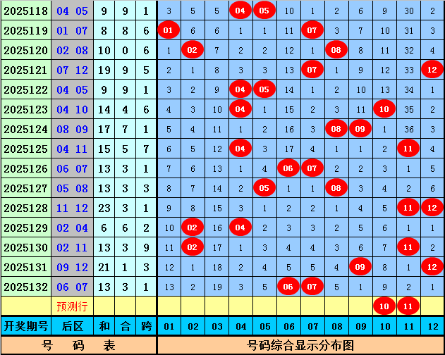 后区第二位:上期该位开出号码07,为遗漏5期的温码,前7期该位分别遗漏:4期、2期、6期、3期、1期、2期、5期,其中冷温热号码个数比为0:3:4,热码开出频次较高,本期预计继续开出热码,参考热码11。