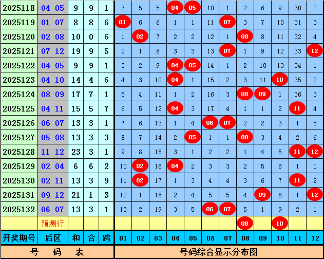 后区分析:上期后区开出号码06和07,最近10期后区奖号奇偶比为8:12,大小比为12:8,本期后区看好号码01、03、05、08、10,后区单挑两码08、10。