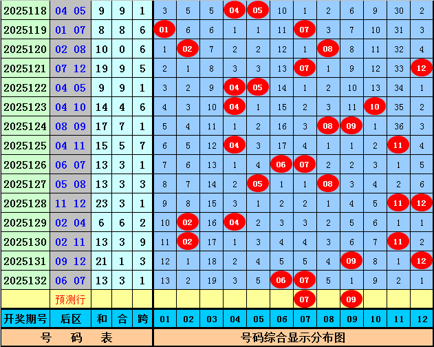 后区分析:后区上期开出号码06和07,分别遗漏5期和5期,目前后区01-12区间冷温热号码个数比为2:3:7,本期后区注意号码07+09。