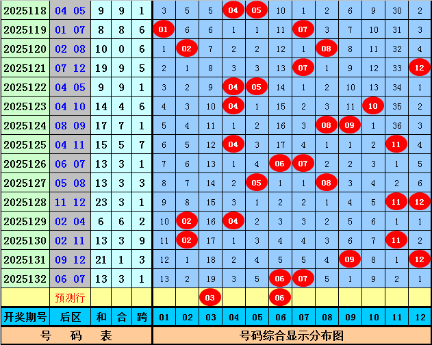 后区分析:上期后区奖号为06+07,开出一大一小组合,上周六后区奖号开出02+11,最近十周六后区奖号大小比为9:11,大小 号码走势基本相当,本周六预计小 号走热,关注全小,看好两码03、06。