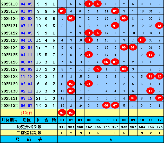 前区第一位:在历史第133期同期开奖中分布范围在01-15区段,平均值为6.1,奇偶比为9:8,目前奇数号码连续遗漏了2年,今年同期重点关注奇数号码回补,推荐号码13。