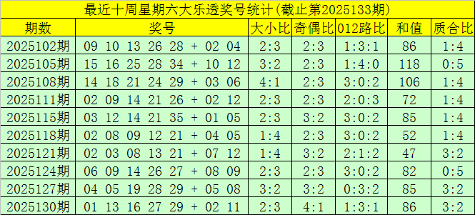其中,号码奇偶比为4:5,奇偶号码走势持平,012路比为3:2:4,1路号码走势较冷,质合比为7:2;