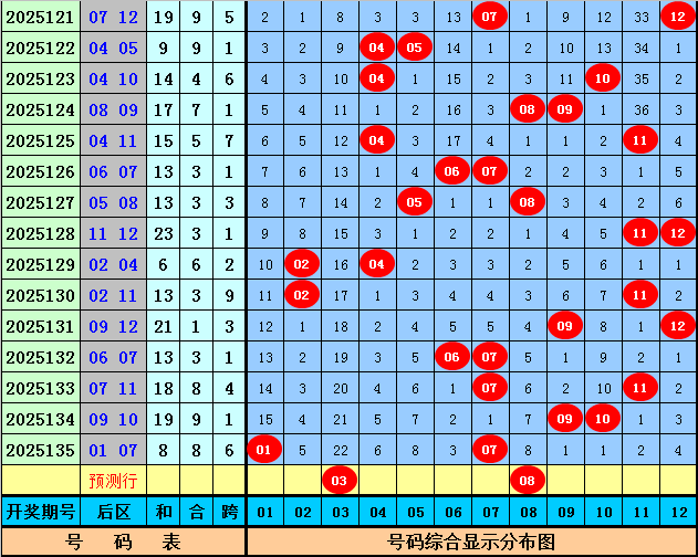 后区分析:上期后区开出两码01和07,分别遗漏了15期和1期,最近10期后区奖号大小个数比为13:7,奇偶个数比为11:9,本期后区注意号码02、03、07、08、12,精选两码03、08。