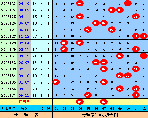 后区大小:最近30期后区奖号大小比为33:27,大号相对活跃,近10期后区奖号大小比为14:6,大号表现活跃,本期后区继续看好一大一小组合。