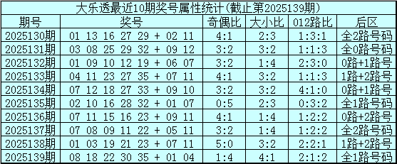 前区奇偶分析:上期前区奖号奇偶比开出1:4,偶数号码较热,最近10期前区奇偶奖号总比例为30:20,奇数号码走势较热,本期看好奇数号码继续走热,预计奇偶比为3:2。