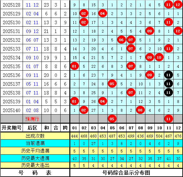 后区判断:上期后区奖号为02和08,开出温码+冷码组合。最近十期后区开出11个热码、6个温码和3个冷码,本期预计奖号关注热码+热码组合,参考两码05、11。