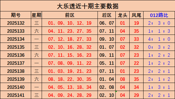后区分析:上期后区开出02 10,跨度8,近十期跨度是:1、4、1、6、2、6、4、3、6、8,波动范围较大,跨度范围在1-8之间,本期预计跨度值下降,重点关注号码01 03,跨度2。