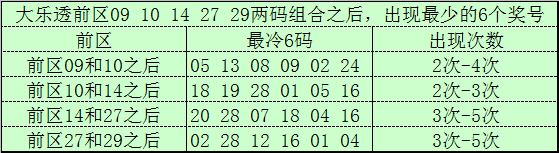 前区冷码统计:大乐透第25142期前区奖号为:09、10、14、27、29,截止第25142期历史上大乐透已经开出了2810期奖号了,在连续两码奖号中:
