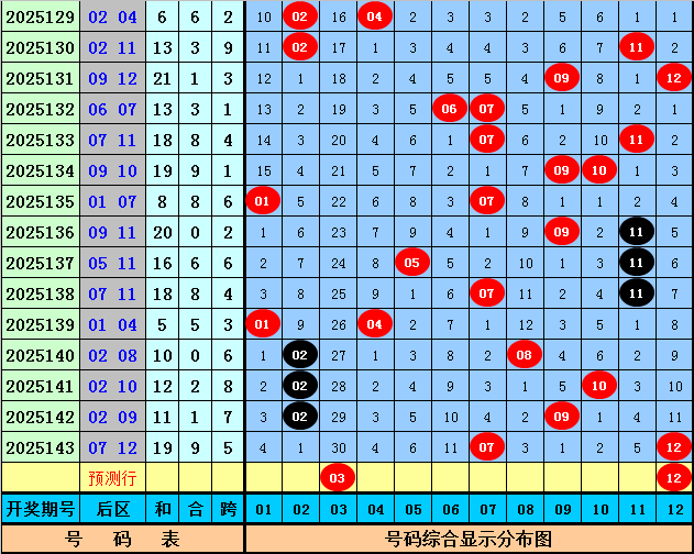 后区分析:上期后区开出1路+0路号07和12,最近30期后区奖号012路比为12:23:25,最近10期后区奖号012路比为4:8:8,本期后区注意号码01、03、05、07、12,单挑两码组合03、12。