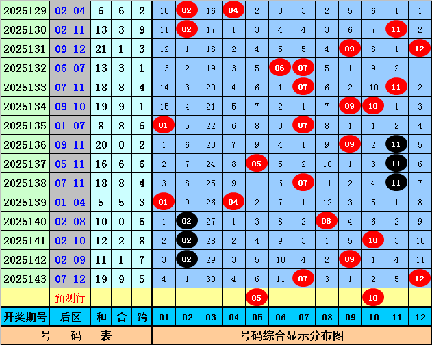012路分析:上期前区奖号012路比为3:1:1,最近两周0路前区奖号走势较热,2路前区奖号表现较冷。