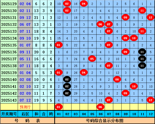 后区推荐:第144期历史同期后区奇偶比总比例为16:16,奇偶号码走势相当,本期看好奇偶号继续持平,关注一奇一偶组合,参考两码01、06。