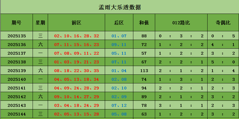 上期大乐透前区号码012路比是1:2:2,近10期大乐透前区0路号码出现15次,1路号码出现19次,2路号码出现16次,总体0路冷,1路热,2路温,本期预测单挑一注前区