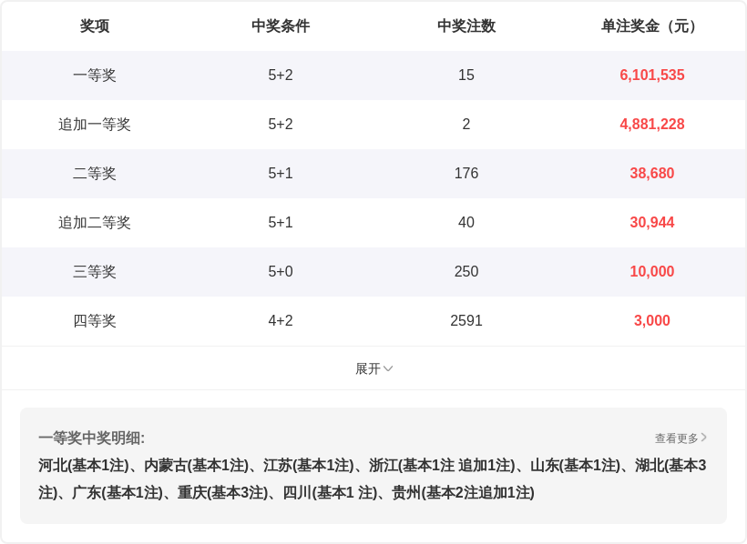 超级大乐透25144期开奖结果02 05 13 15 28 + 05 08,012路比1:2:2,质合比3:2,七区比2:0:2:0:0:1:0,蓝球号码大小为小、大。