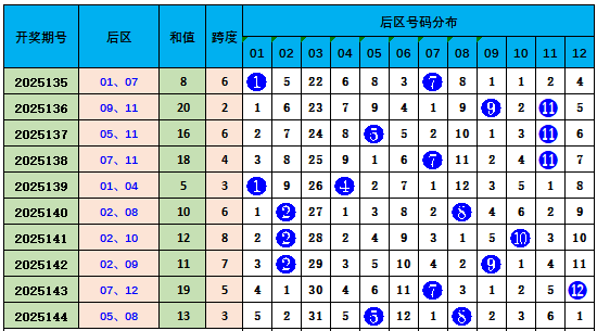 后区号码分析:后区开出奇偶组合05,08。近10期奇偶比12:8,奇数号码热度较高。本期预测开出偶奇组合04,07