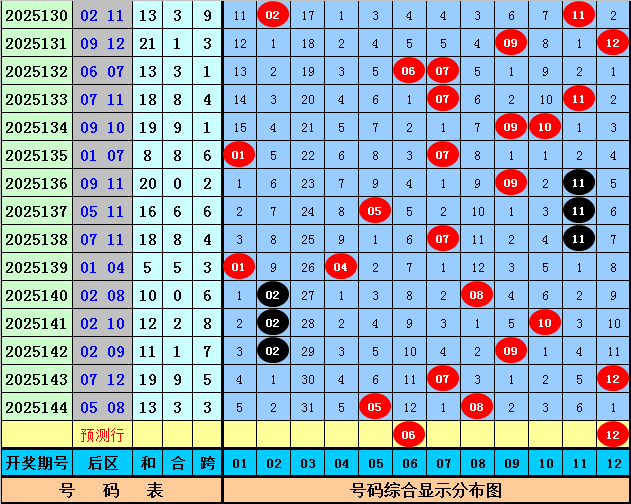 后区分析:上期后区开出全2路号码05和08,最近30期后区奖号012路比为12:22:26,最近10期后区奖号012路比为3:7:10,本期后区注意号码02、06、07、10、12,单挑两码组合06、12。