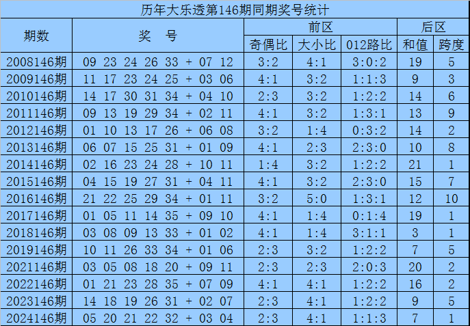 袁军师体彩大乐透第2025146期历史同期奖号分析: