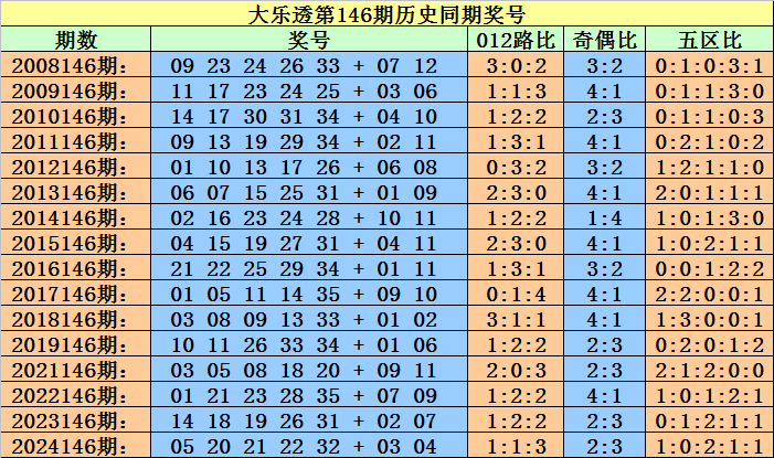 上期开奖:大乐透第2025145期开奖:05、07、20、22、25+04、05,前区012路比为0:3:2,奇偶比为3:2,五区比为2:0:1:2:0,大小比为3:2。