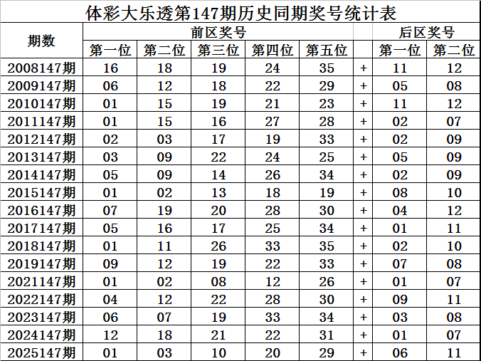 王守礼体彩大乐透第2025147期历史同期定位升重降号码分析: