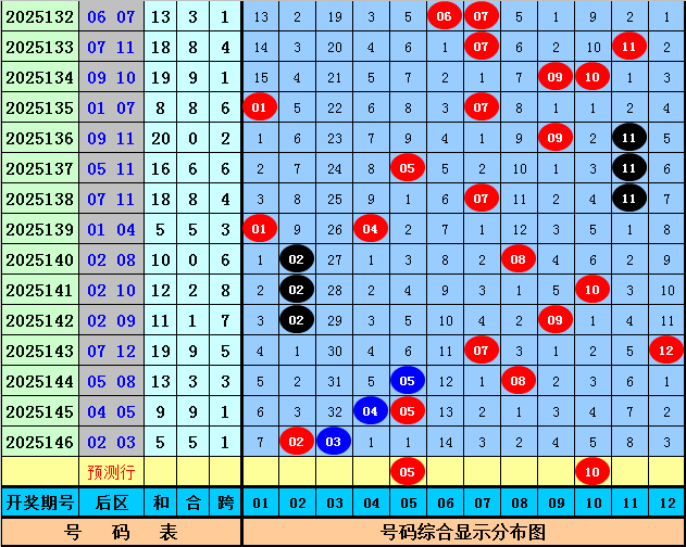 后区判断:后区第147期历史同期奖号大小比总比例为5:11,小 号表现较冷,本期小 号回补,关注一大一小,看好两码05、10。