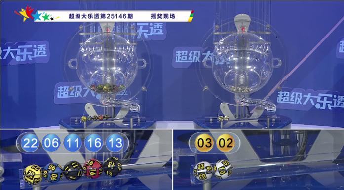 体彩大乐透第25146期奖号为:06 11 13 16 22+02 03,前区奇偶比为2:3,大小比为1:4,012路比为1:3:1。后区奇偶比为1:1,大小比为0:2。