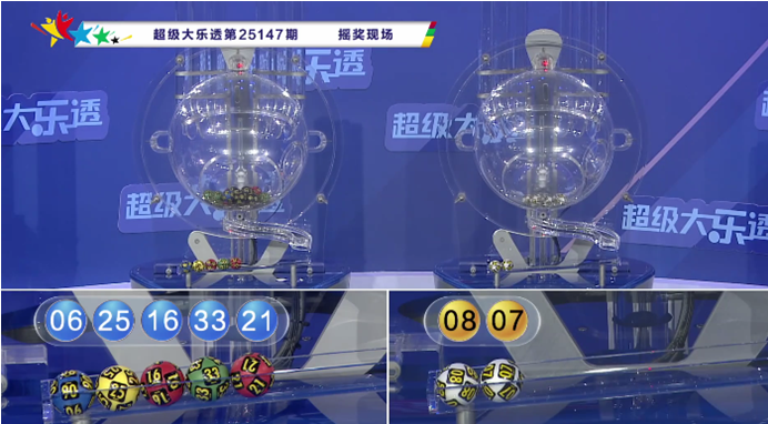 体彩大乐透第2025147期奖号为:06 16 21 25 33+07 08,前区号码大小比开出3:2,012路比开出3:2:0,奇偶比开出3:2,后区号码和值开出15,跨度开出1。