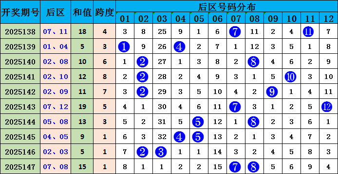 后区综合分析:上期后区号码为大大奇偶组合。