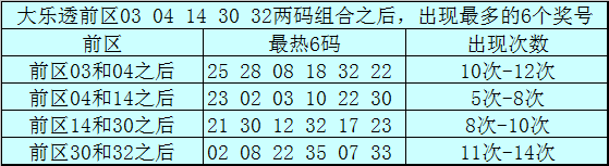 前区两码03和04和之后表现最热的6个号码为:25、28、08、18、32、22;