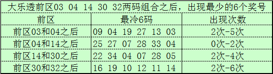前区冷码统计:大乐透第25148期前区奖号为:03、04、14、30、32,截止第25148期历史上大乐透已经开出了2816期奖号了,在连续两码奖号中: