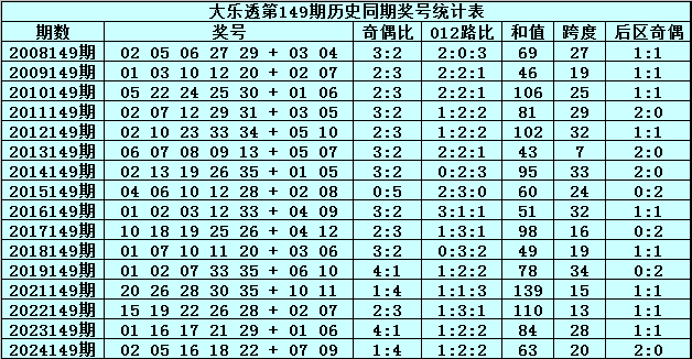 水镜体彩大乐透第2025149期历史同期奖号分析: