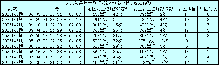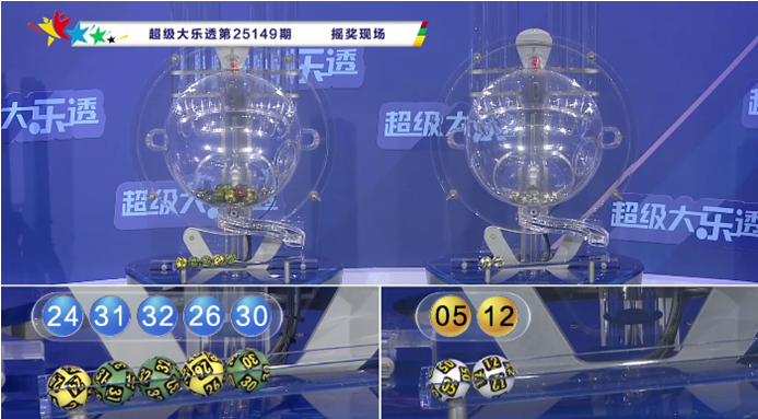 体彩大乐透第25149期奖号开出:24 26 30 31 32+05 12,前区奖号大小比为5:0,012路比为2:1:2,奇偶比为1:4,后区号码和值为17,跨度为7。