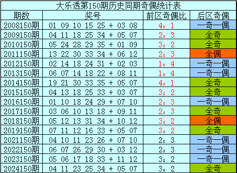 后区分析:在第150期历史同期开奖中,后区奖号奇偶比为21:11,最近5年同期后区奇偶走势为:全奇、一奇一偶、一奇一偶、一奇一偶、全奇,今年同期预计再出全奇组合,参考号码01、03。