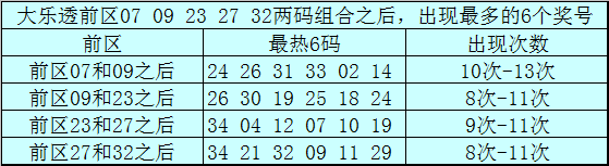 前区两码07和09和之后表现最热的6个号码为:24、26、31、33、02、14;
