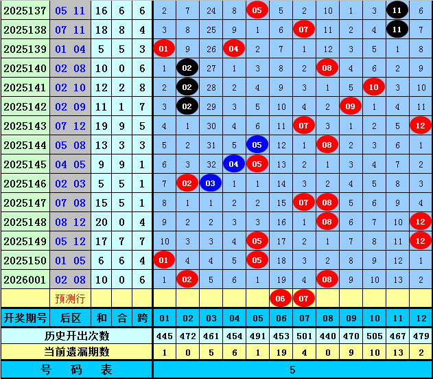 后区分析【一区01-04,二区05-08,三区09-12】:上期后区奖号为02和08,分别落在第一、二区,近50期后区三区比为31:38:31,近10期三区比为6:10:4,本期重防第二区号码大热,精选两码06+07。