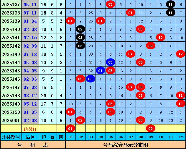 后区奖号分析:上期后区奖号为02+08,遗漏期数为4期和2期,目前后区号码01-12分别遗漏:1期、0期、5期、6期、1期、19期、4期、0期、9期、10期、13期、2期,本期后区注意号码01、06、09、10、12,两码关注01、09。