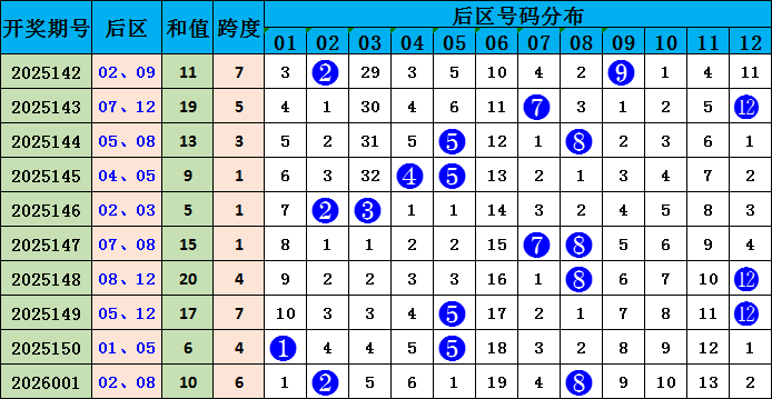 后区分析:大乐透后区上期开出偶偶组合,跨度6。近10期后区奇偶组合出现4期,偶奇组合出现3期,奇奇组合出现1期,偶偶组合出现2期;近10期后区两码跨度1-5开出7次,6-11开出3次,本期后区两码综合推荐:01、07。