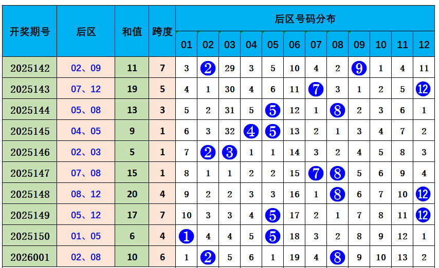 上期后区开出奖号02、08,冷热比0:2,近10期冷热比中,0:2出现6次,1:1出现4次,2:0出现0次,总体热码开出较多。综合分析,本期关注冷热比1:1。