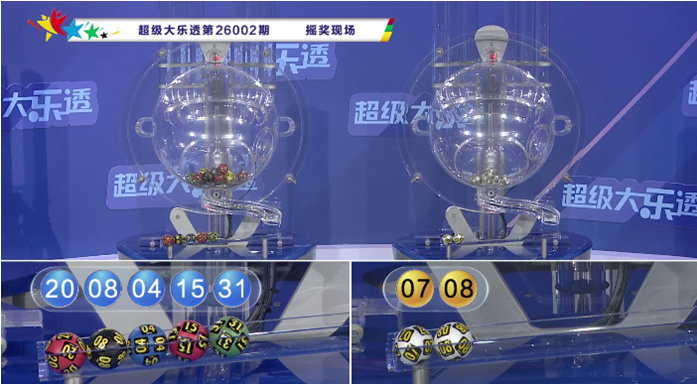 体彩大乐透第2026002期奖号为:04 08 15 20 31+07 08,前区号码大小比开出2:3,012路比开出1:2:2,奇偶比开出2:3,后区号码和值开出15,跨度开出1。