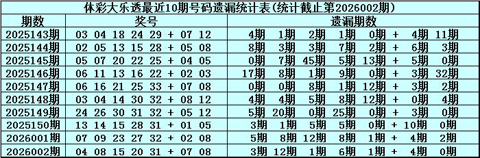 体彩大乐透第2026002期奖号为:04 08 15 20 31 + 07 08,前区号码奇偶比为2:3,大小比为2:3,和值为78,012路比为1:2:2,后区号码奇偶比为1:1,大小比为2:0。