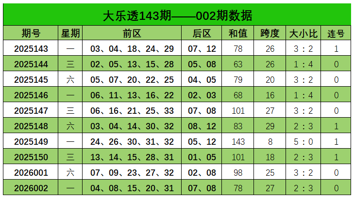 大乐透第2026002期出奖号统计:前区04、08、15、20、31,后区07、08。和值78,跨度27,大小比2:3,未开出连号。