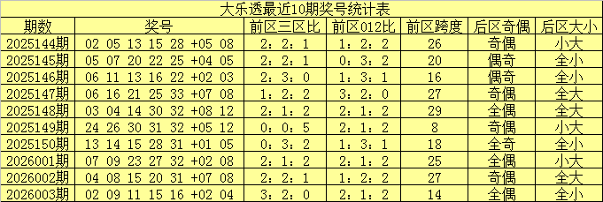 大乐透第2026003期奖号开出:02 09 11 15 16 +02 04。其中前区三区比为3:2:0,012路比为2:1:2,后区开出全小、全偶奖号。
