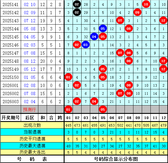 和值跨度:上期和值开出53,对比第2026002期和值下降了25个点位,本期预计和值在大号区域热出,看好出现在97周围。